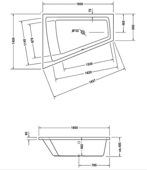 1) Ванна акрилова Duravit Paiova 180х140 см асиметрична білий