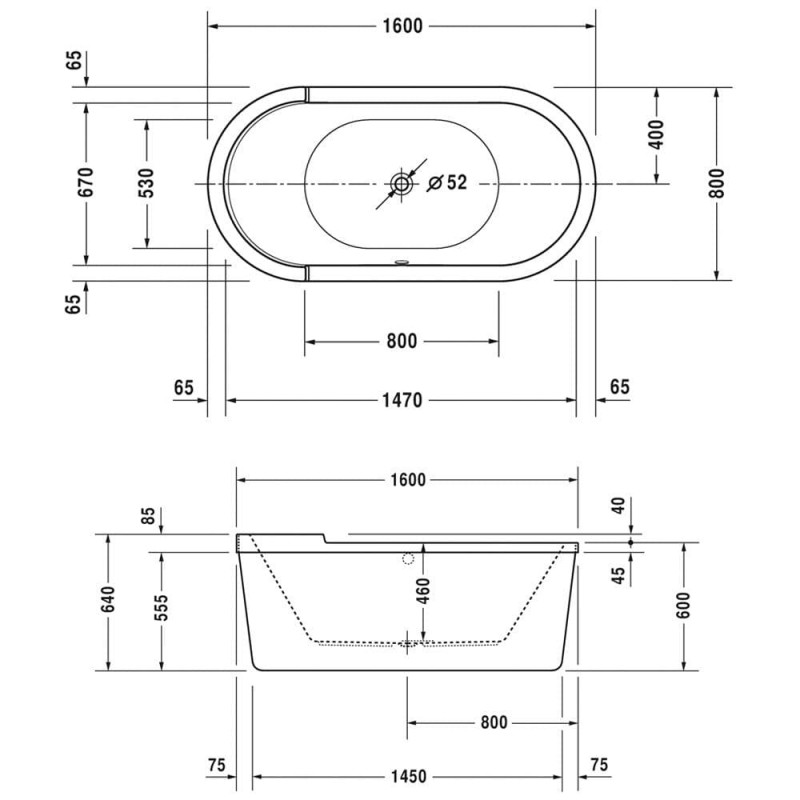 1) Ванна акрилова Duravit Starck tubs & showers 160х80 см овальна білий