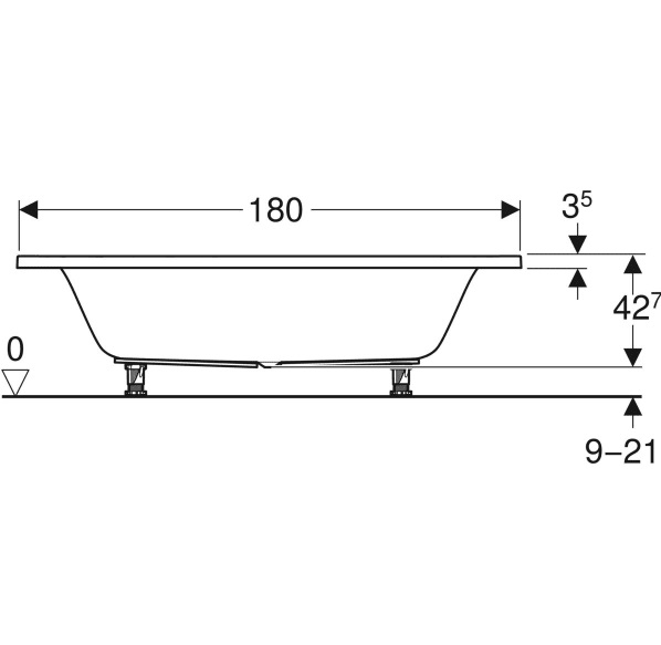 Ванна акрилова Geberit Selnova Duo прямокутна 180x80 з ніжками білий