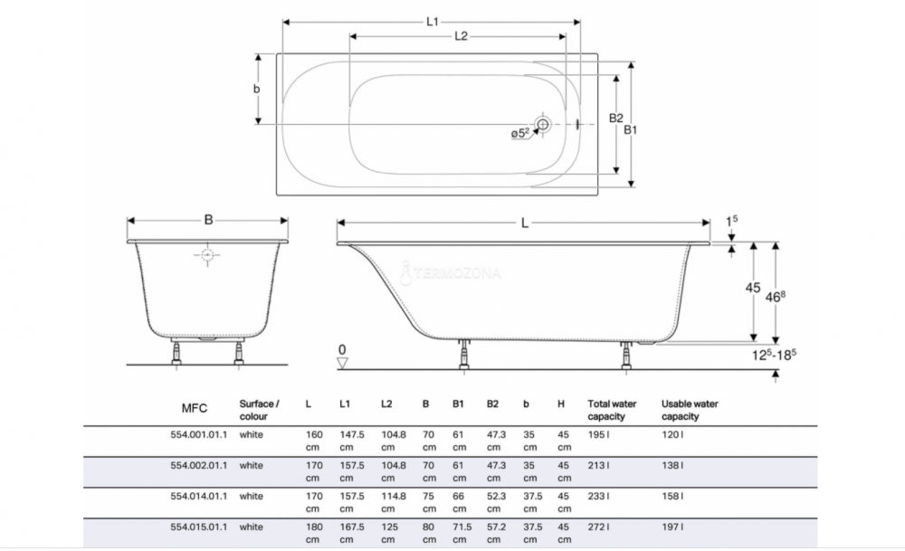 1) Ванна акрилова Geberit Soana Slim rim 170х70 білий