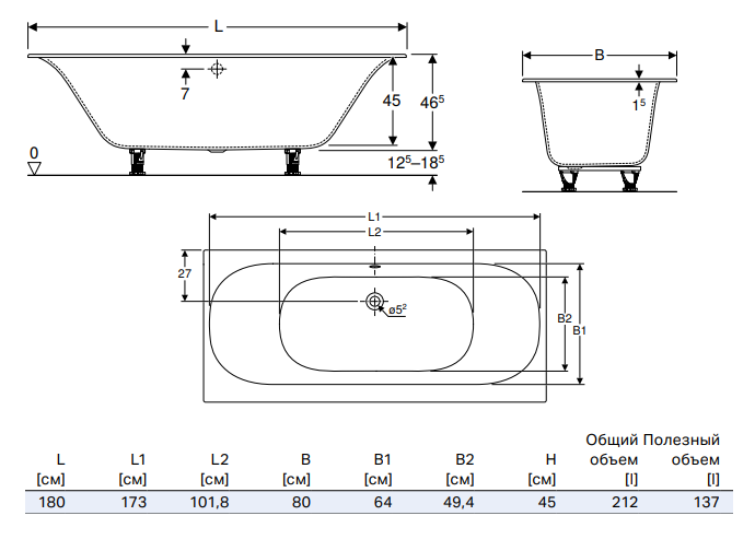 Ванна акрилова Geberit Soana Slim rim Duo 180х80 з ніжками білий 554.004.01.1