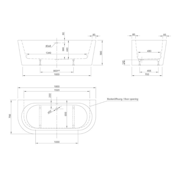 Ванна акрилова Knief Wall 180x80 см з щілинним переливом білий глянцевий 0100277+010009106S