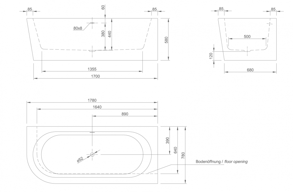 1) Ванна акрилова Knief Wall Corner L 180x80 см