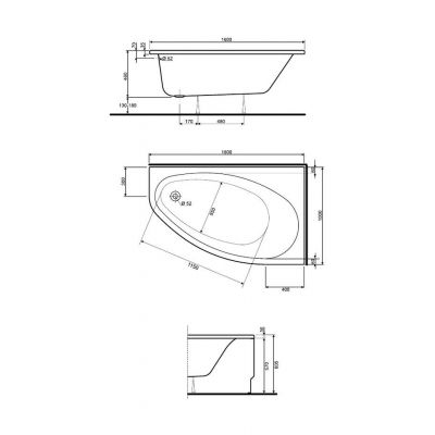 1) Ванна акрилова Koło Elipso 160x100 см асиметрична права білий