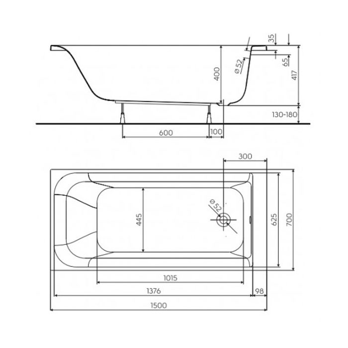 Ванна акрилова Kolo Rekord 150х70 см без ніжок білий XWP3650000N
