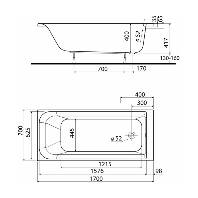 Поспішайте купити Ванна акрилова Kolo Rekord 170х70 см без ніжок білий XWP3677000N за акційною ціною.