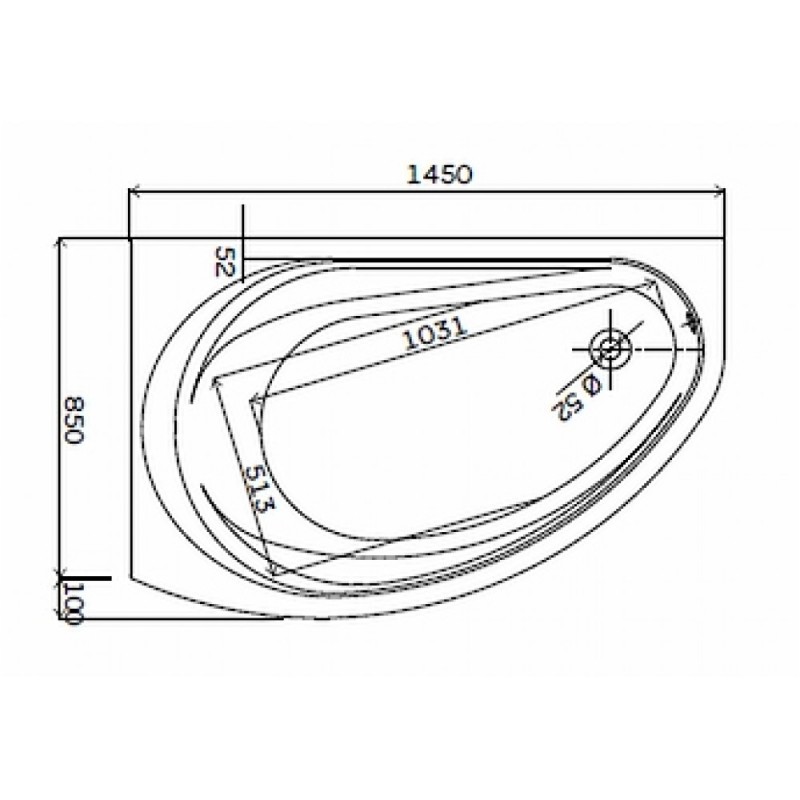 1) Ванна акрилова Kolo Supero асиметрична 145х85 см ліва білий