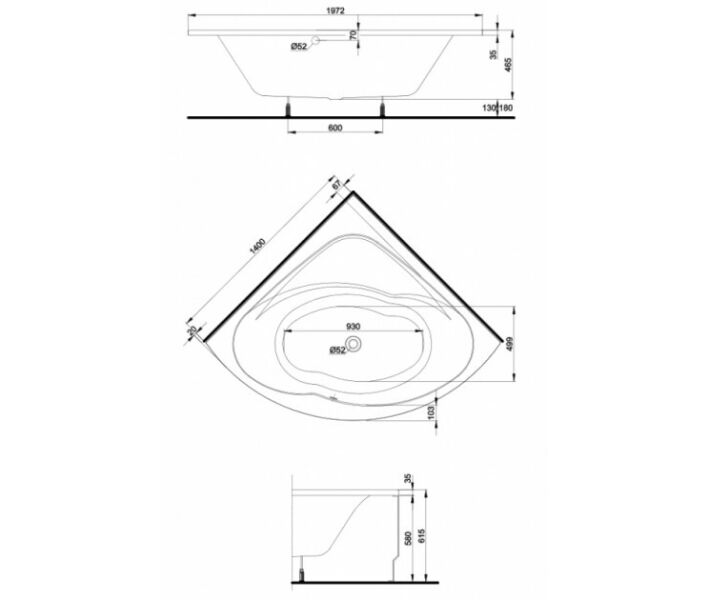 1) Ванна акрилова Kolo Supero Plus кутова 140х140 см білий