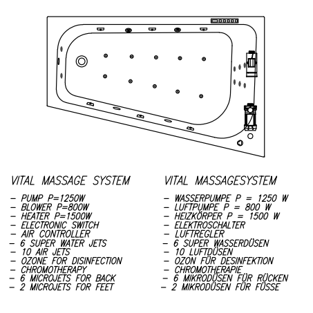 з масажною системою VITAL+MIKRO (масаж спини), із встановленою панеллю