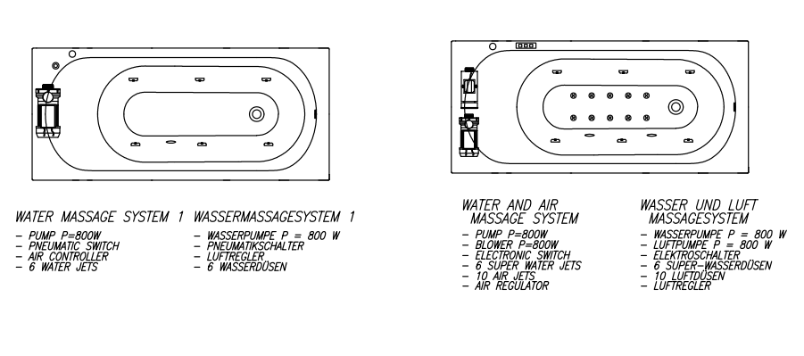 із системою водного масажу+MIKRO (масаж спини), із встановленою панеллю