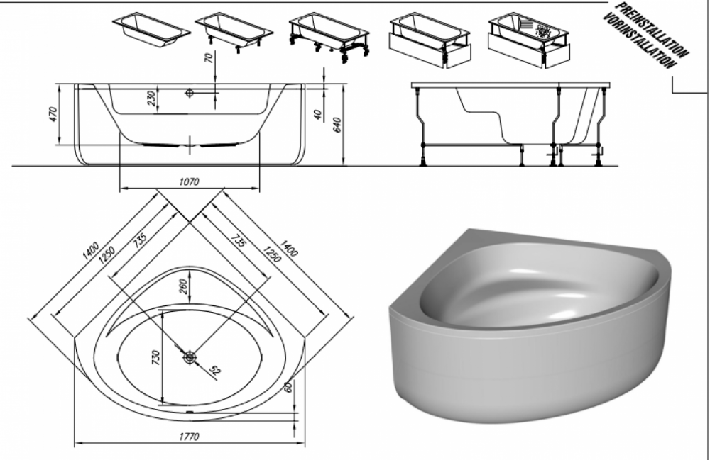 - Можливість вбудовування масажних систем