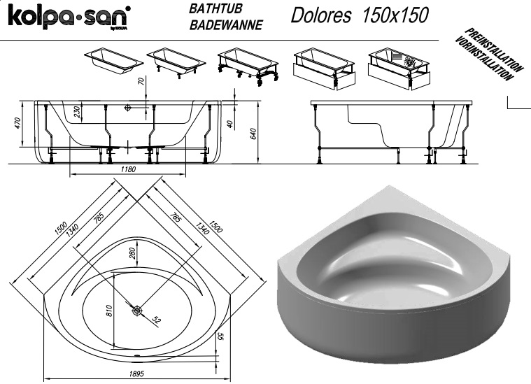 Ванна акрилова Kolpa San Dolores 150x150 см кутова білий 565200