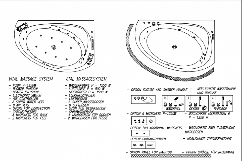з масажною системою VITAL+MIKRO (масаж спини), із встановленою панеллю
