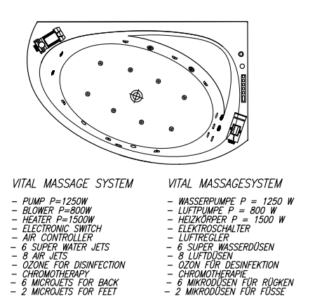 з масажною системою VITAL+MIKRO (масаж спини), із встановленою панеллю