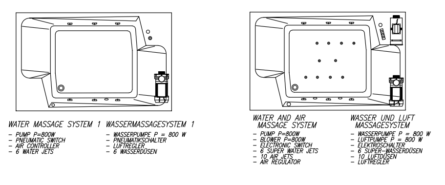Система гідромасажу працює таким чином: водяний насос створює тиск і приплив води через масажні сопла, які спрямовують струмінь води змішаний з повітрям. Тисяча повітряних кульок з великою швидкістюводи інтенсивно масажують людину. Приплив води контролюється відміреним надходженням повітря в масажні форсунки.