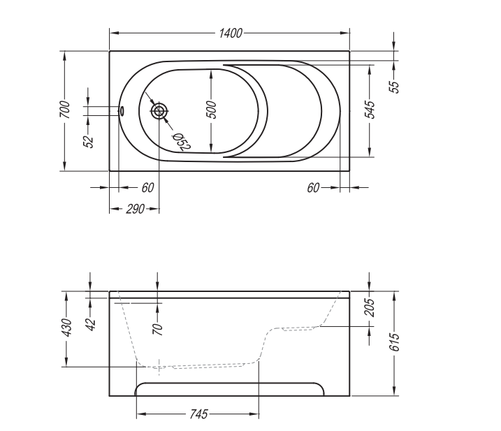 - Розмір: 1400 х 700 мм