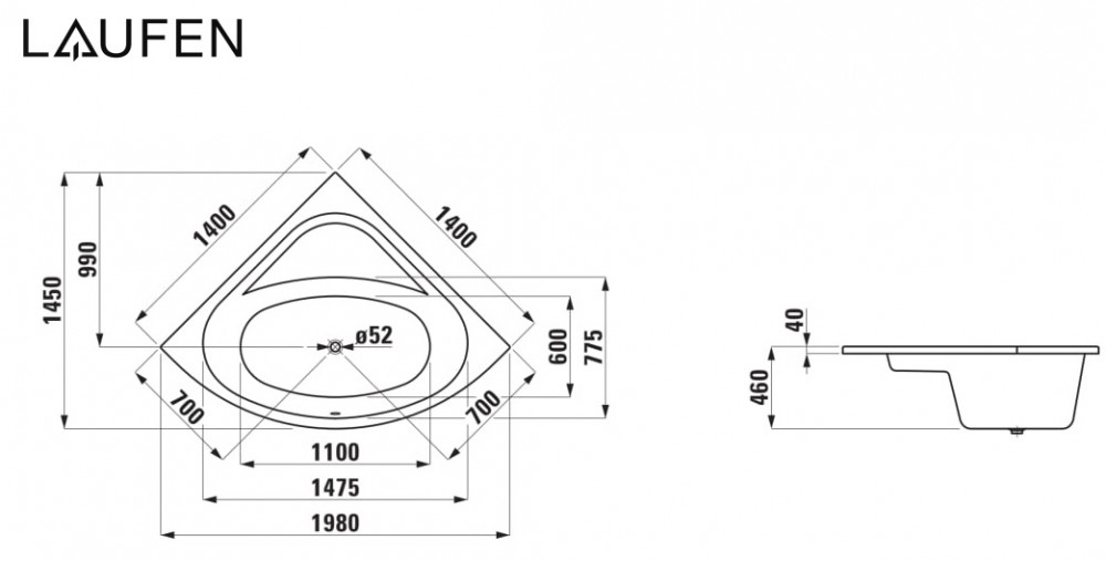 Ванна акрилова Laufen Solutions 140х140 см вбудована кутова білий H2425000000001