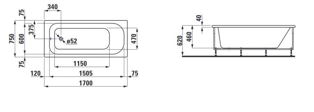 Ванна акрилова Laufen Solutions 170х75 см прямокутна вбудована білий H2235010000001