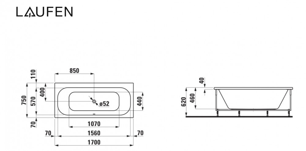 Ванна акрилова Laufen Solutions 170х75 см прямокутна вбудована білий H2235310000001