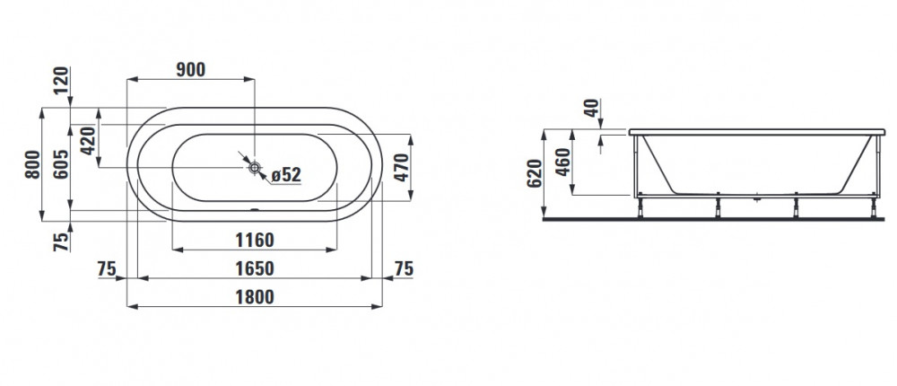 Ванна акрилова Laufen Solutions 180х80 см вбудована овальна білий H2245110000001