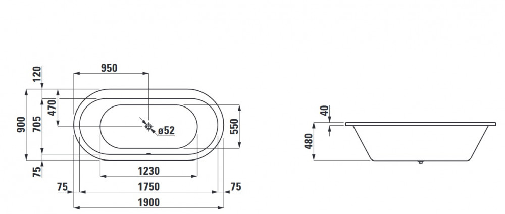 Ванна акрилова Laufen Solutions 190х90 см овальна вбудована білий H2255100000001