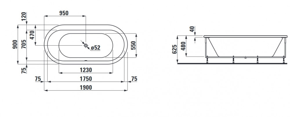 Ванна акрилова Laufen Solutions 190х90 см овальна вбудована білий H2255110000001