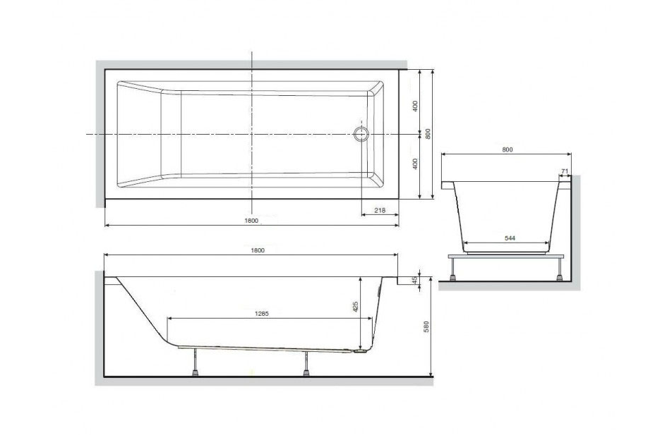 1) Ванна акрилова Novellini Calos 180x80 см прямокутна білий C2118080A