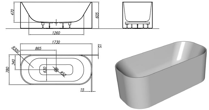 1) Ванна акрилова овальна Kolpa-San Pandora-FS 173x78 см білий