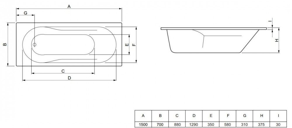 - злив ванни розташований в торцевій частині