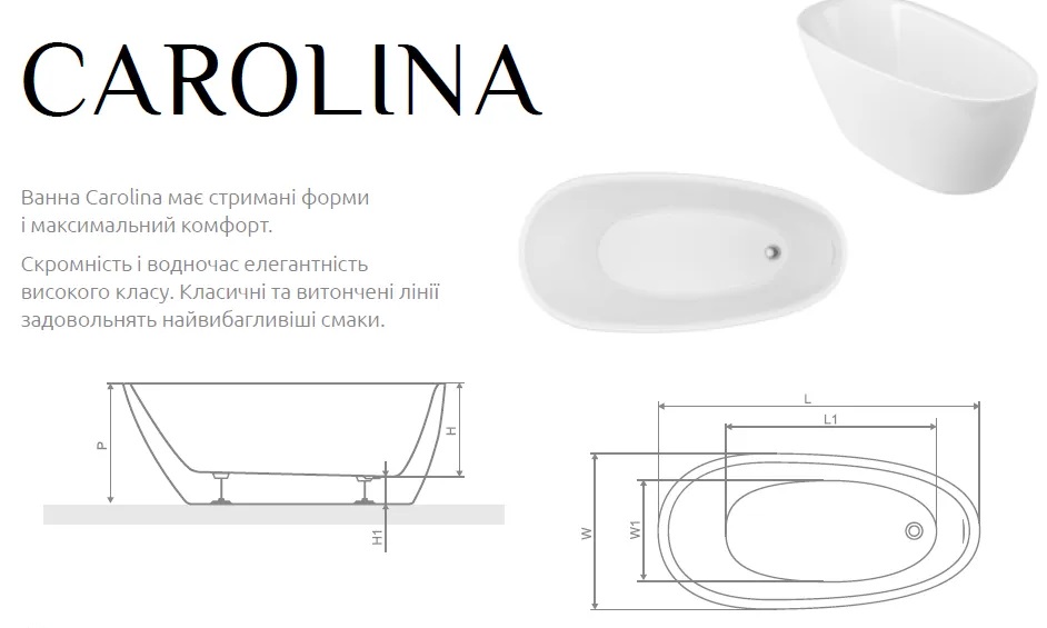 Ванна Carolina має стримані форми та максимальний комфорт. Скромність і водночас елегантність високого класу. Класичні та витончені лінії задовольнять найвибагливіші смаки.