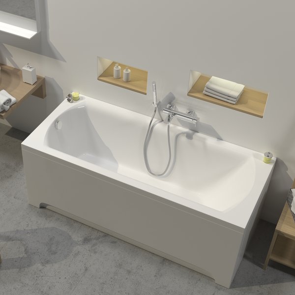 - Додаткові аксесуари: опора, передня та бічна панелі у білому кольорі, стічний комплект для ванн