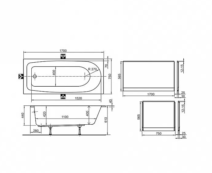 - гарантія: 10 років - умовою гарантії є використання оригінальної опори RAVAK (ніжки) для даного типу ванни відповідно до інструкції з монтажу