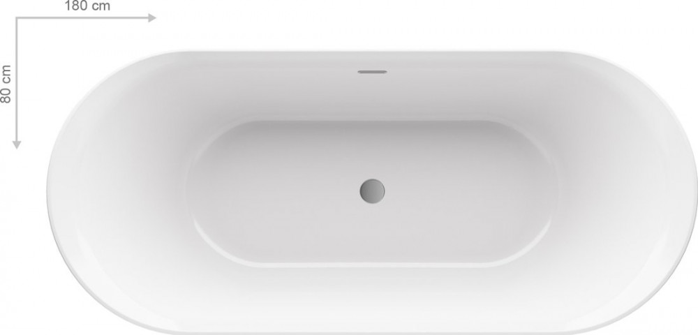 Ванна акрилова Ravak Ypsilon 180x80 см, що окремо стоїть білий/злив перелив хром