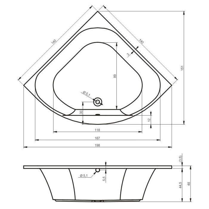 1) Ванна акрилова Riho Atlanta кутова 140x140 білий