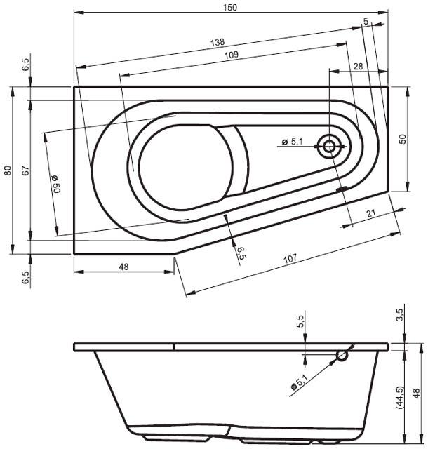 1) Ванна акрилова Riho Delta асиметрична 150x80 права білий