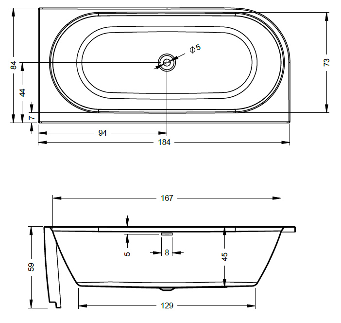 - Особливості: світлодіоди розміщені під ванною