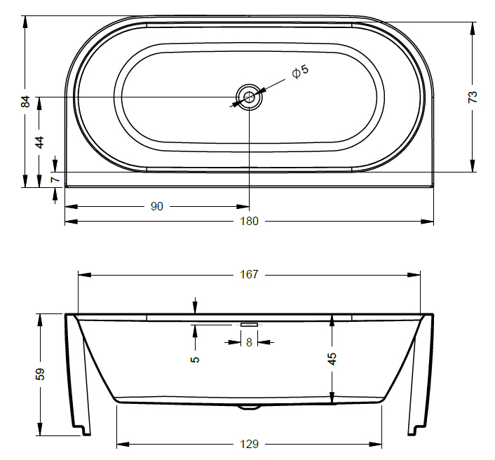 1) Ванна акрилова Riho Desire Wall Mounted 180x84 білий