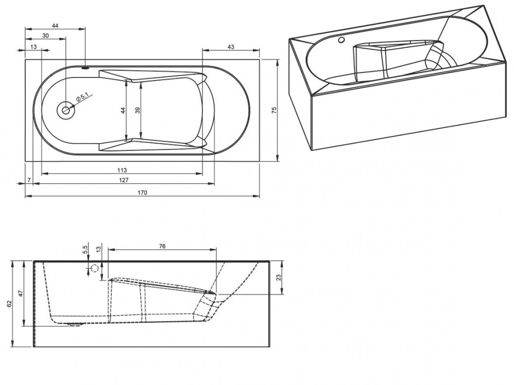 1) Ванна акрилова Riho Lazy Plug & Play прямокутна 170x75 ліва з панеллю