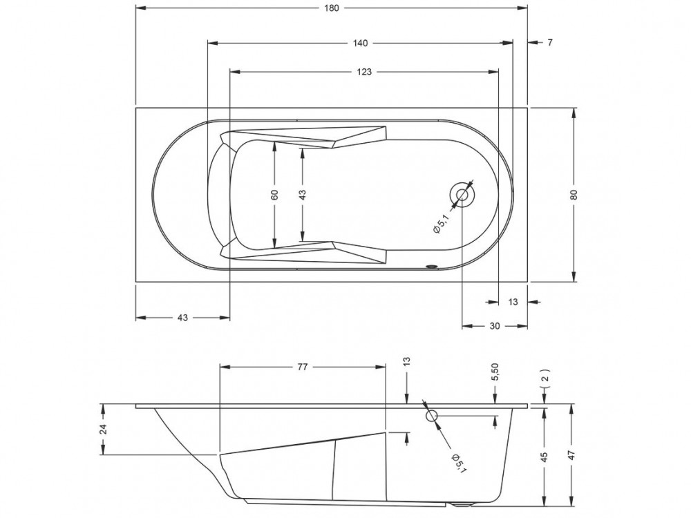1) Ванна акрилова Riho Lazy прямокутна 180x80 права білий