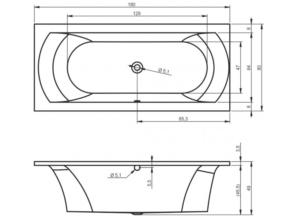 1) Ванна акрилова Riho Lima прямокутна 180x80 білий