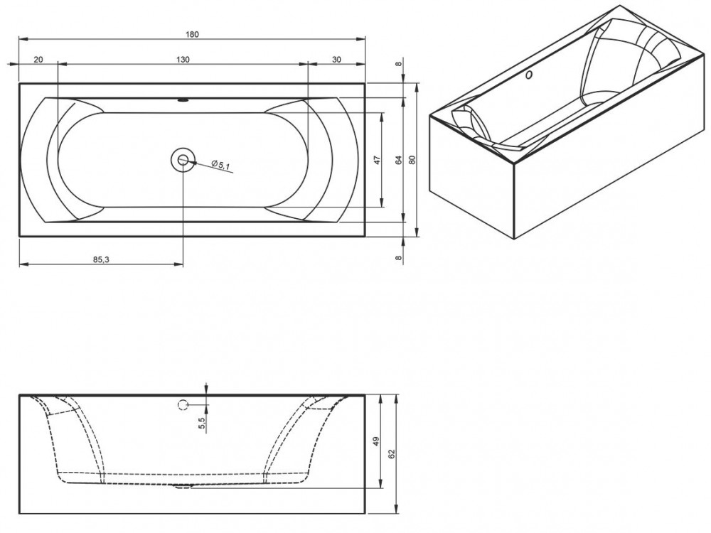- Діаметр зливу: 5.1 см