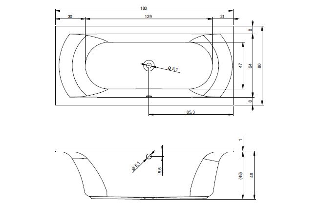 - Діаметр зливу: 5.1 см