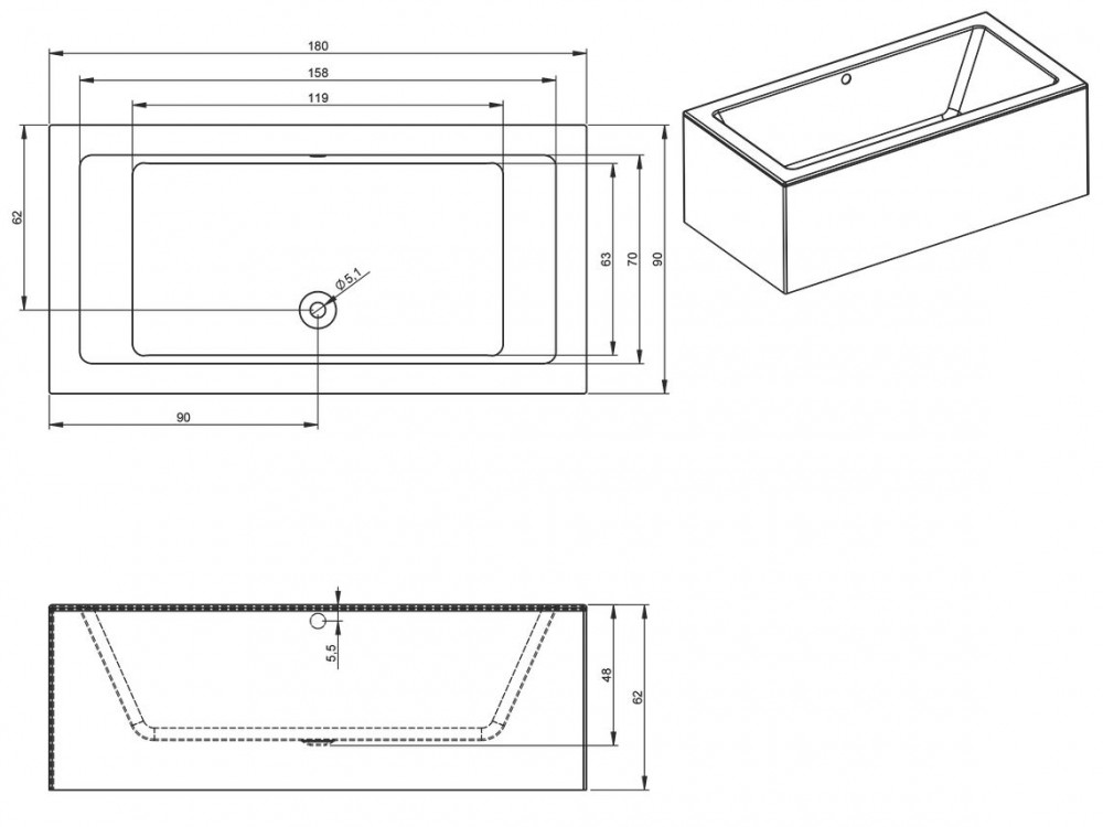 - Діаметр зливу: 5.1 см