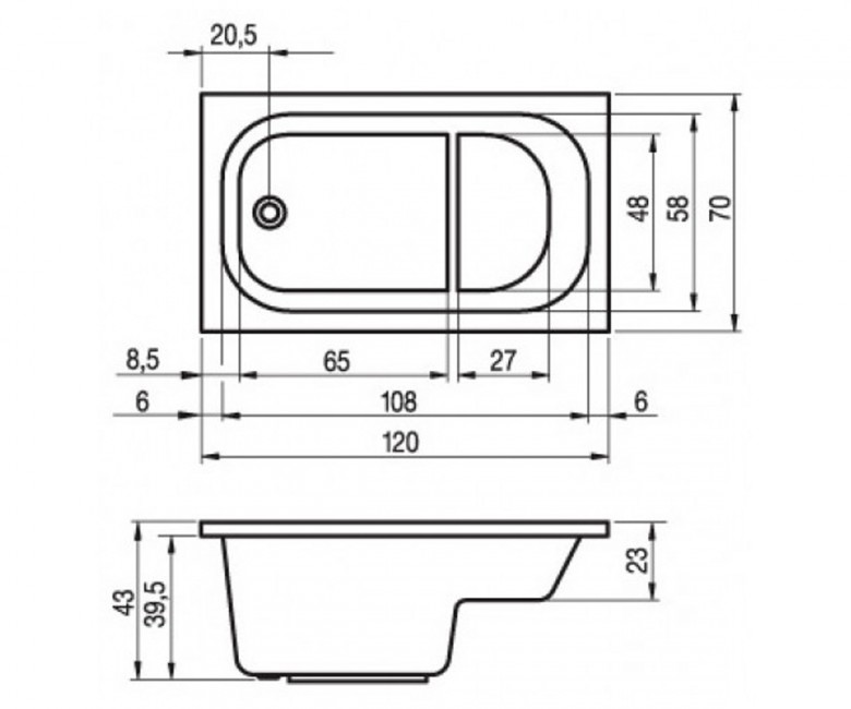 1) Ванна акрилова Riho Petit прямокутна 120x70 білий