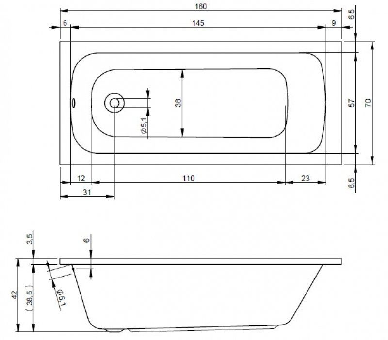 - Діаметр зливу: 5.1 см