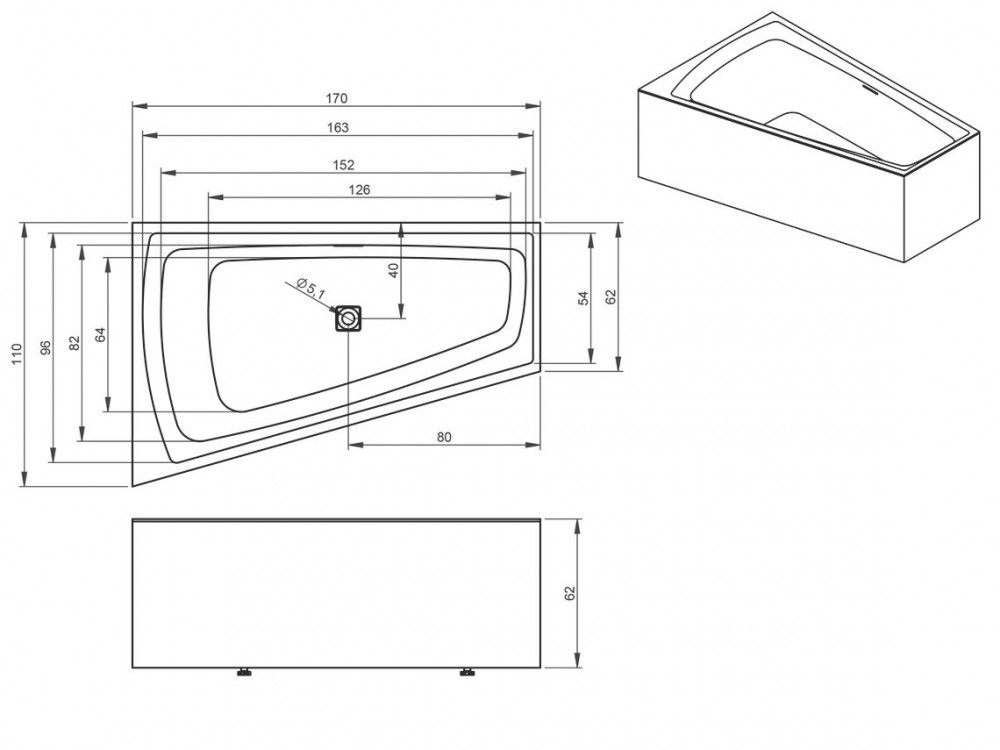 1) Ванна акрилова Riho Still Smart Plug & Play 170x110 права з панеллю