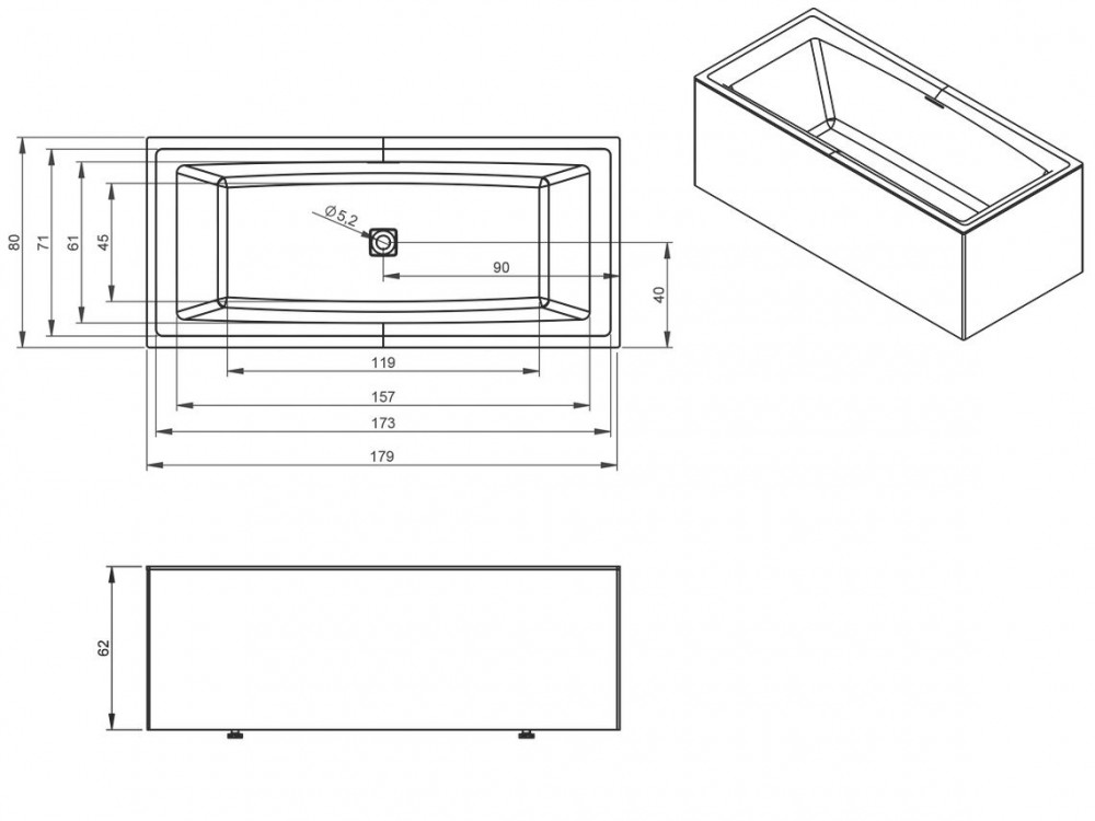 1) Ванна акрилова Riho Still Square Plug & Play прямокутна 180x80 права з панеллю