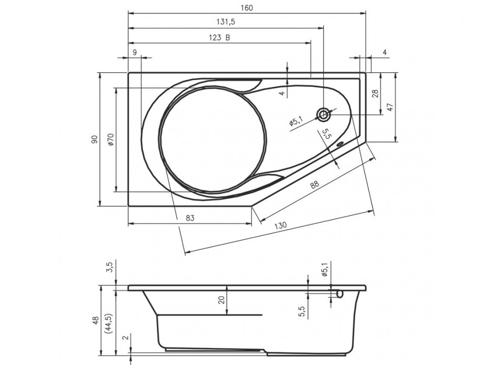 1) Ванна акрилова Riho Yukon асиметрична 160х90 права білий