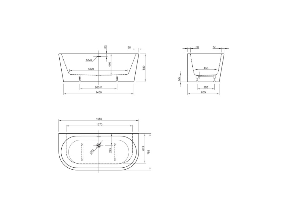 Ванна акрилова Roca Eternity 165х65,5 см пристінна з білим сифоном