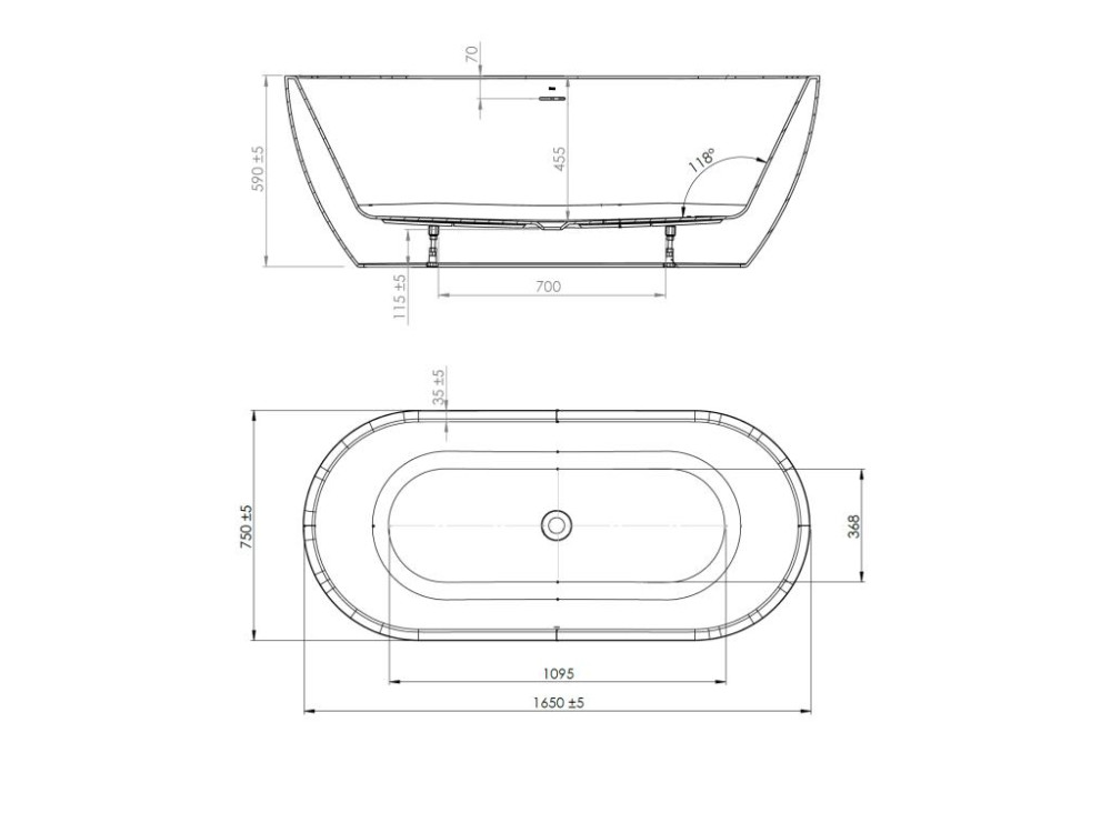 Ванна акрилова Roca Noya 165х75 см окремостояча білий глянець A248687000